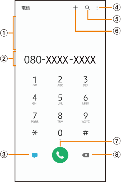 最後に入力した番号またはカーソルの左側にある番号を削除します。ロングタッチすると、入力した番号またはカーソルの左側にある番号をすべて削除できます。