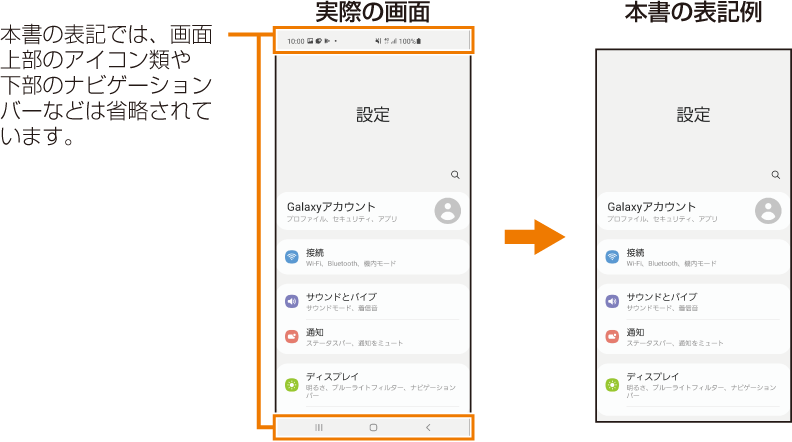 本書ではGalaxy S10+の「プリズム ブラック」カラーの表示を例に説明しています。一部の手順や仕様は、Galaxy S10+とGalaxy S10の記載を分けて説明しています。 本書では縦表示の操作を基準に説明しています。横表示では、メニューの項目/アイコン/画面上のボタンなどが異なる場合があります。 本書では「au Nano IC Card 04」の名称を「au ICカード」と表記しています。 本書では「SC TVアンテナケーブル03(03SCHSA)」および「SC TVアンテナケーブル04(04SCHSA)」の名称を、「SC TVアンテナケーブル」と省略しています。 本書では「microSDTMメモリカード(市販品)」、「microSDHCTMメモリカード(市販品)」および「microSDXCTMメモリカード(市販品)」の名称を、「microSDメモリカード」と省略しています。 本書に記載している会社名、製品名は、各社の商標または登録商標です。なお、本文中では、TM、®マークを省略している場合があります。 |
