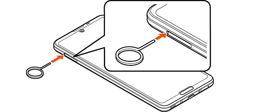 SIM取り出しツール(試供品)を利用してau ICカード/microSDメモリカードトレイを引き出す