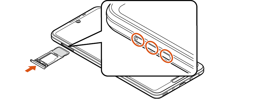 au ICカード/microSDメモリカードトレイの着脱について詳しくは、「au ICカードを取り付ける」をご参照ください。