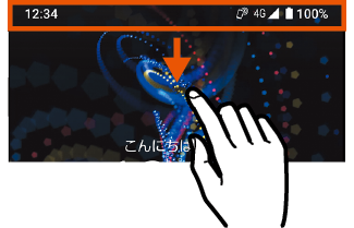 画面を上下にスライドすると、お知らせパネル/ステータスパネルを切り替えられます。 |