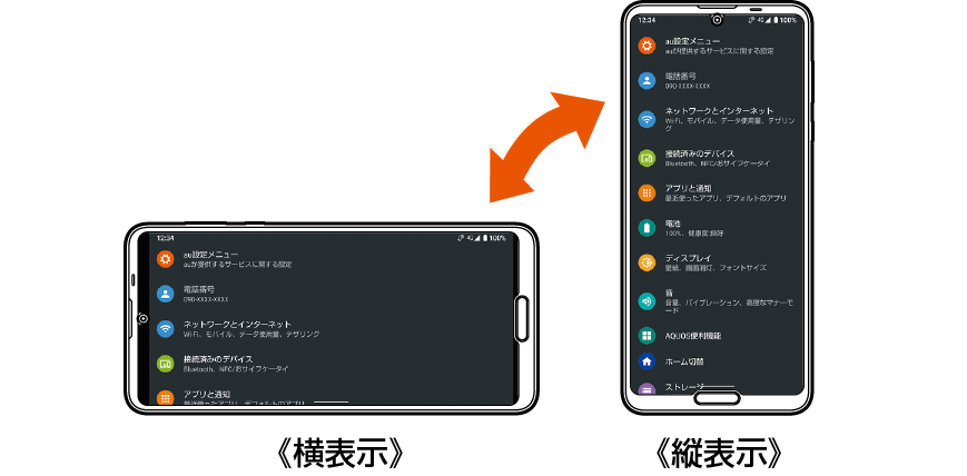 本製品の向きに合わせて、縦横表示を切り替えます。