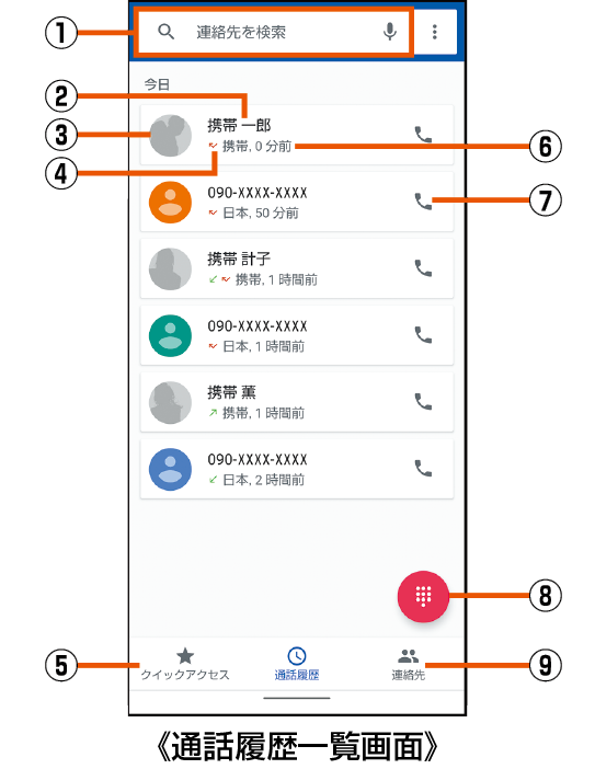 タップすると、電話帳への登録やメッセージの送信、通話履歴の詳細の確認などを行うことができます。