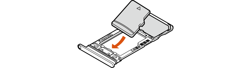 microSDメモリカードの端子(金属)面を下向きにして、au ICカード/microSDメモリカードトレイに取り付ける