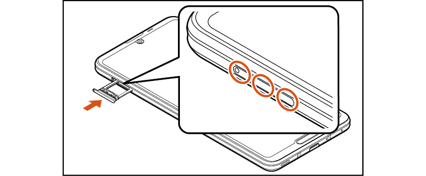 au ICカード/microSDメモリカードトレイを本体に水平に奥までしっかり差し込んでください。