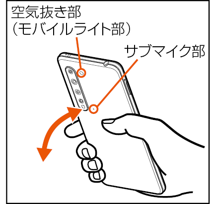 水に濡れた後は、必ずイヤホンマイク端子部、外部接続端子部、受話口(レシーバー)/スピーカー部、送話口(マイク)部、スピーカー部、キー部、サブマイク部、空気抜き部(モバイルライト部)などの水抜きをしてください。