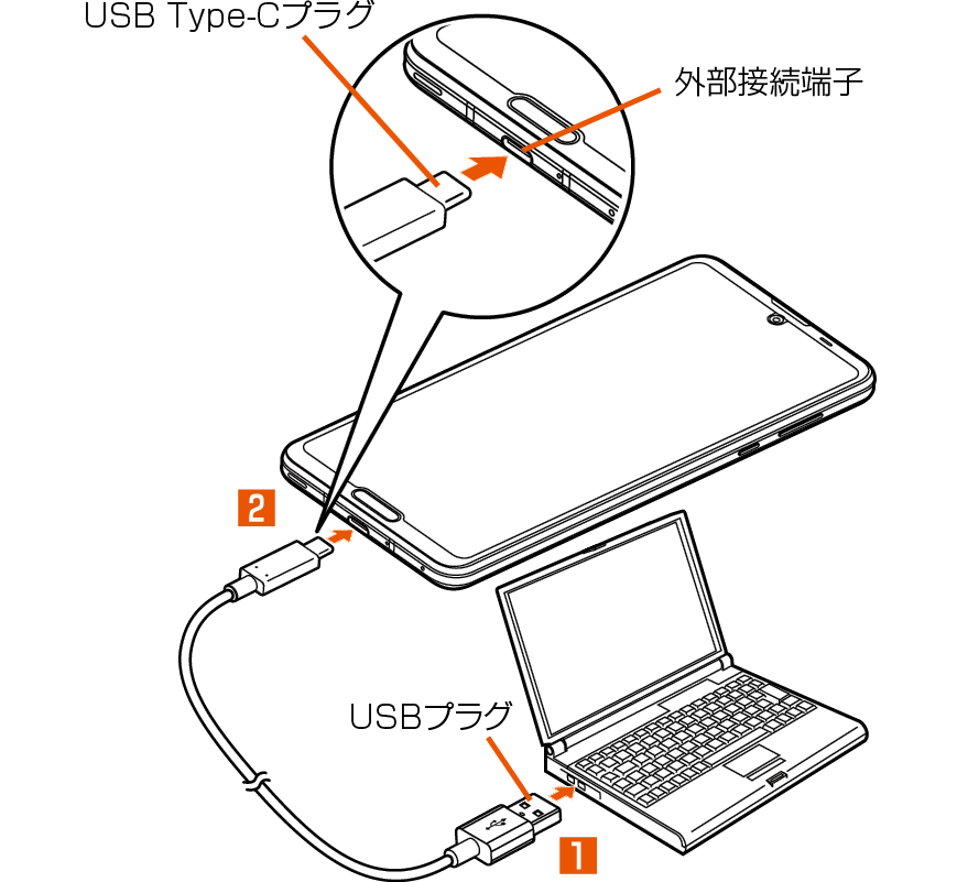 パソコンが完全に起動している状態で、USB Type-Cケーブル(市販品)をパソコンのUSBポートに接続