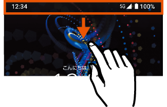 ホーム画面では、ステータスバー以外の位置から下にスライドしてもお知らせパネルを表示できます。