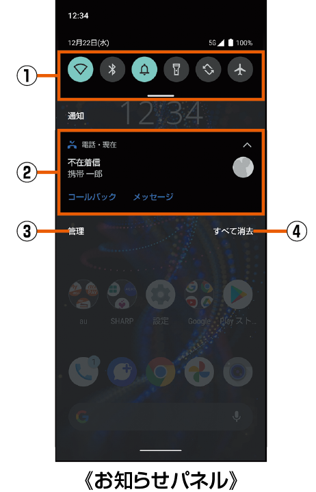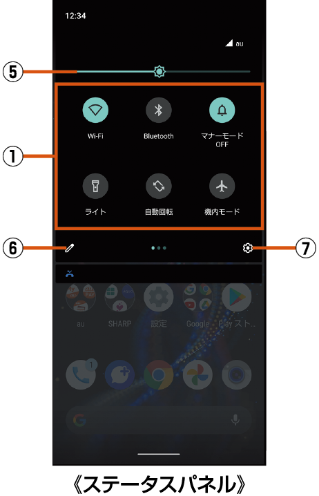 お知らせ/ステータスパネルでは、お知らせアイコンとステータスアイコンの確認や対応するアプリケーションの起動ができます。