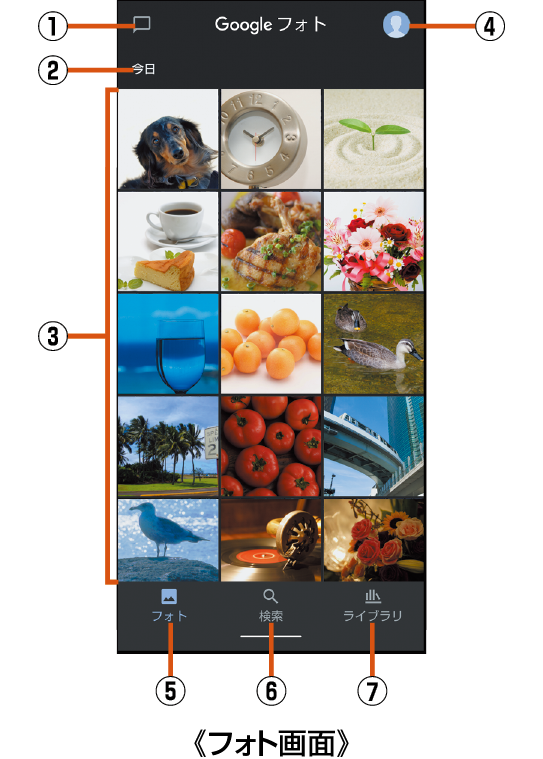 「フォト」アプリはPlay ストアより更新することができ、最新バージョンでは操作方法が変わることがあります。更新された場合は、フォト画面でアカウント設定のアイコンをタップ→[ヘルプとフィードバック]と操作し、内容をご確認ください。 |