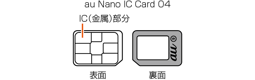au ICカードを取り扱うときは、故障や破損の原因となりますので、次のことにご注意ください。 au ICカードのIC(金属)部分には触れないでください。 正しい挿入方向をご確認ください。 無理な取り付け、取り外しはしないでください。 |