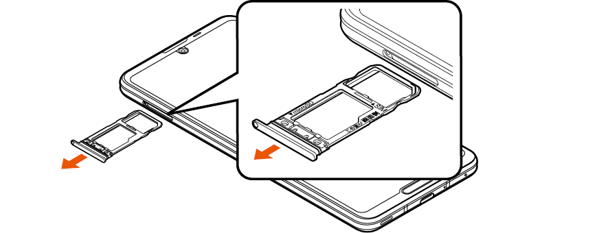 au ICカード/microSDメモリカードトレイの着脱について詳しくは、「au ICカードを取り付ける」をご参照ください。