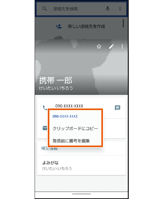 各項目やデータをロングタッチすると利用できるメニューが表示されます。