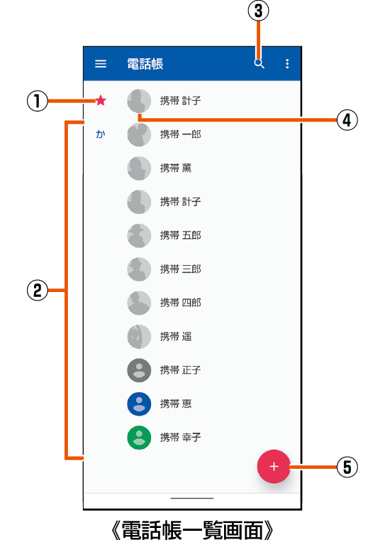 ホーム画面→「アプリ一覧画面」を表示→[電話帳]→[