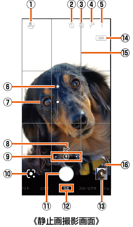 撮影画面の操作について詳しくは、「撮影画面の見かた」をご参照ください。