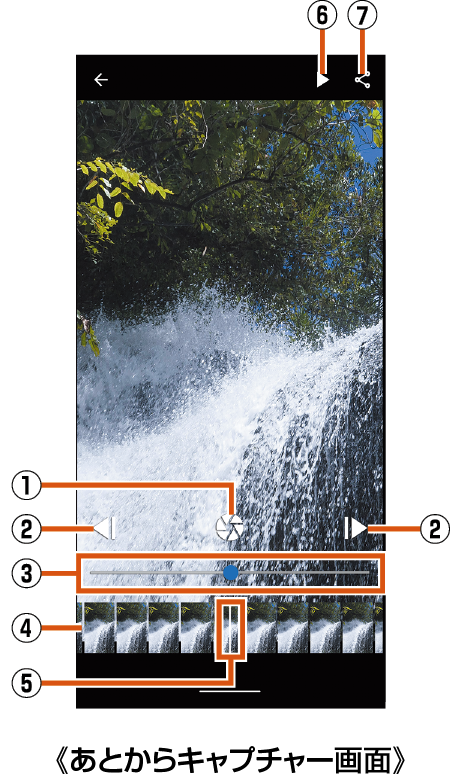 静止画の切り出しが行われ、保存されたデータをBluetooth®やメール添付などで送信したり、インターネット上のデータ共有サービスなどにアップロードしたりできます。