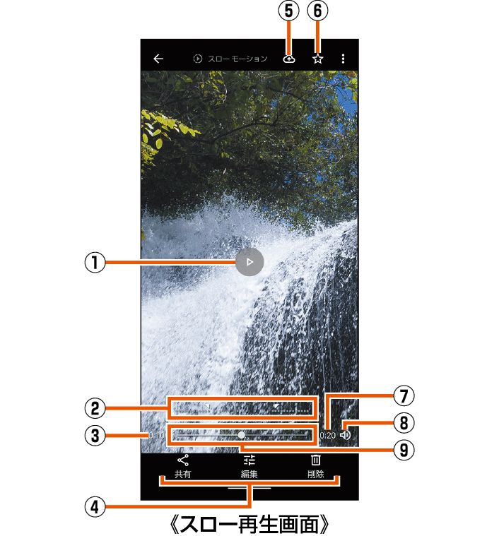 スロービデオで撮影した動画を、なめらかに再生したりスローで再生することができます。スロービデオで撮影した動画のサムネイルには