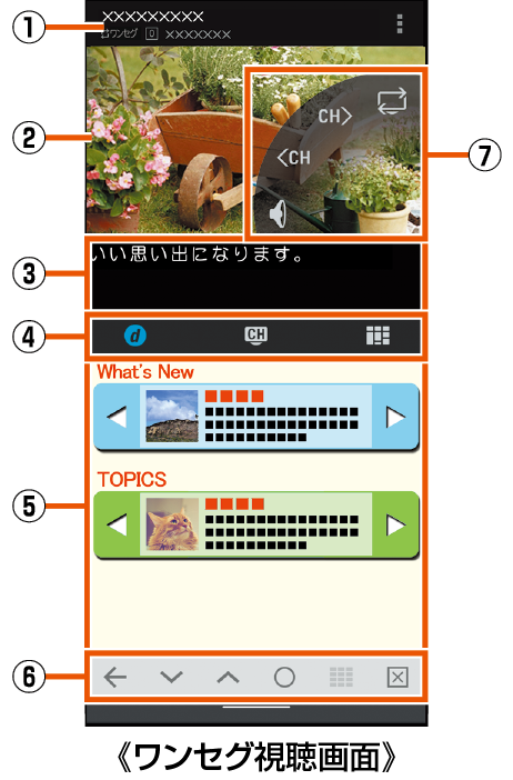 :チャンネルの切替、ロングタッチでチャンネル検索