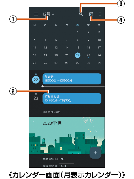 カレンダーの利用にはGoogleアカウントの設定が必要です。詳しくは、「初期設定を行う」をご参照ください。