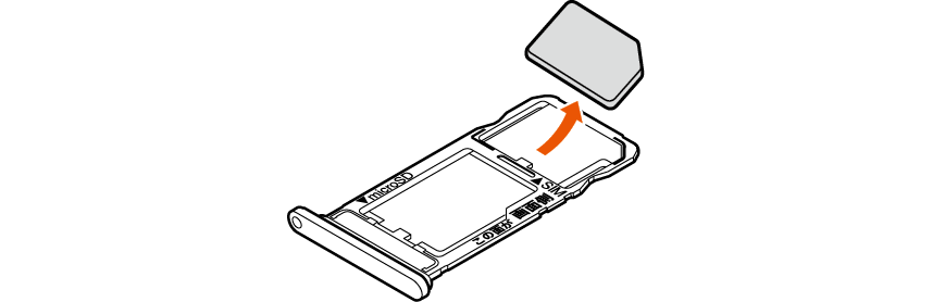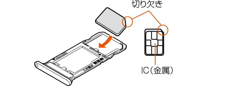 au ICカードのIC(金属)面を下向きにして、au ICカード/microSDメモリカードトレイに取り付ける