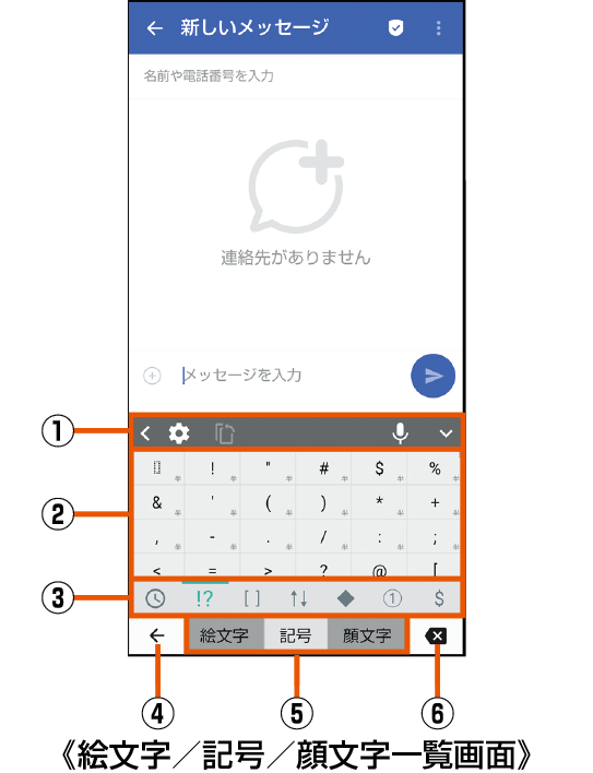 絵文字/記号/顔文字一覧画面の見かた
