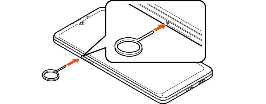 SIM取り出しツール(試供品)の先端をau ICカード/microSDメモリカードトレイ取り出し用の穴に差し込む