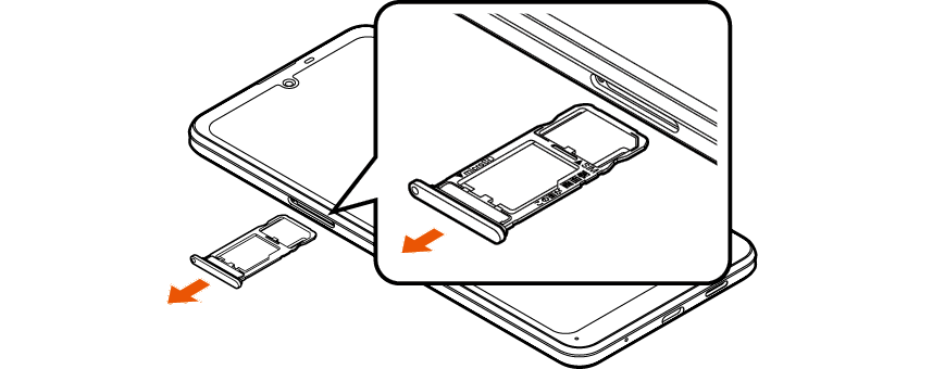 au ICカード/microSDメモリカードトレイの着脱について詳しくは、「au ICカードを取り付ける」をご参照ください。