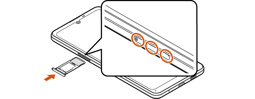au ICカード/microSDメモリカードトレイを本体に対してまっすぐ水平に、奥までしっかり差し込む
