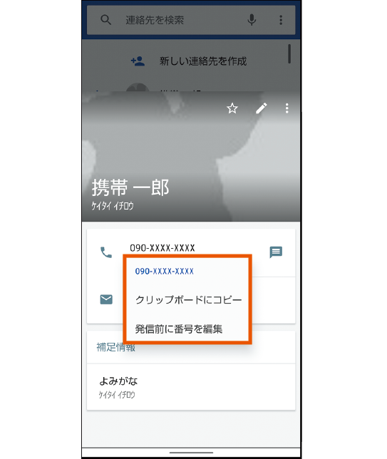 各項目やデータをロングタッチすると利用できるメニューが表示されます。