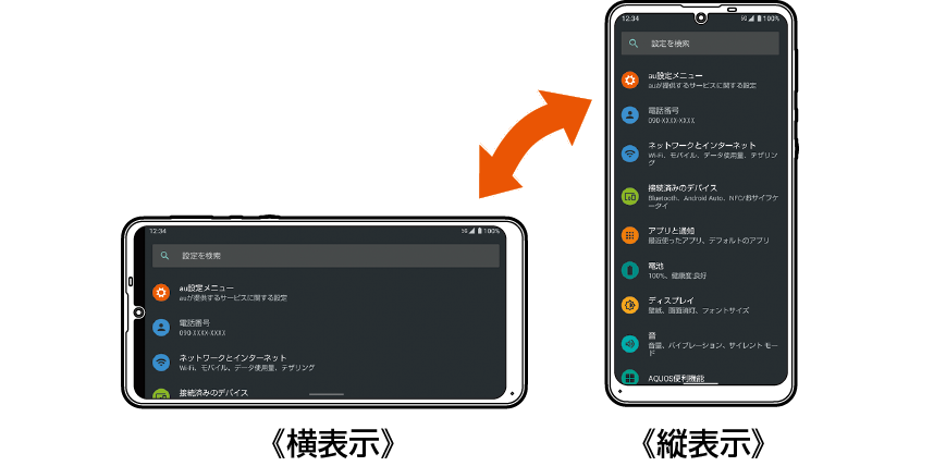 本製品の向きに合わせて、縦横表示を切り替えます。