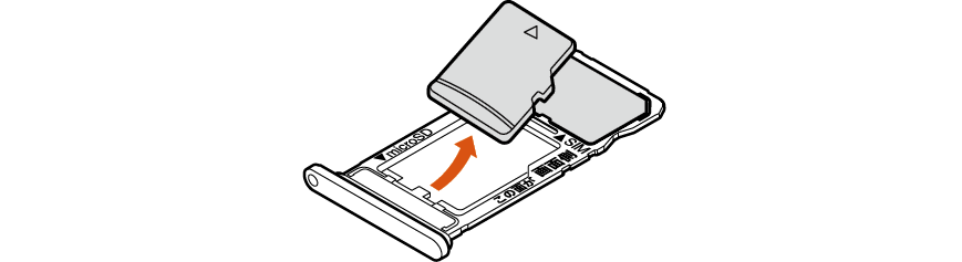 microSDメモリカードの端子(金属)面を下向きにして、au ICカード/microSDメモリカードトレイに取り付ける