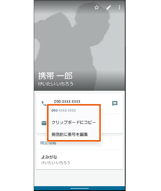 各項目やデータをロングタッチすると利用できるメニューが表示されます。