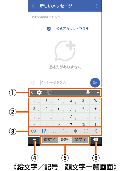 絵文字/記号/顔文字のカテゴリです。選択したカテゴリに応じて、絵文字/記号/顔文字のリストが表示されます。「