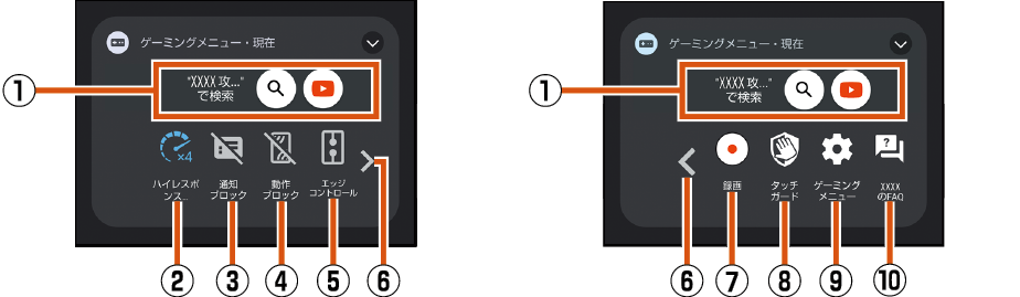 ゲーミングメニューから検索する際の文言を設定します。 |