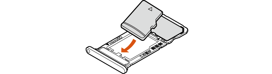 microSDメモリカードの向きに注意して、確実にカードトレイに取り付けてください。