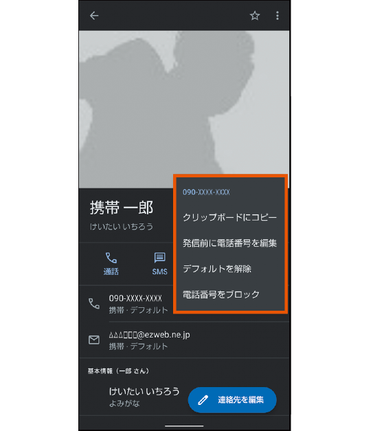 各項目やデータをロングタッチすると利用できるメニューが表示されます。