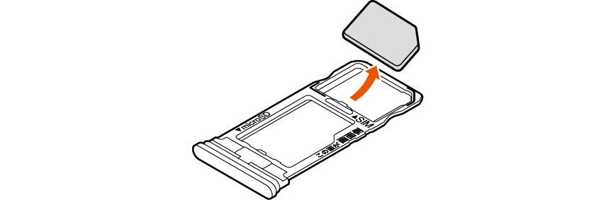 au ICカード/microSDメモリカードトレイを本体に対してまっすぐ水平に、奥までしっかり差し込む