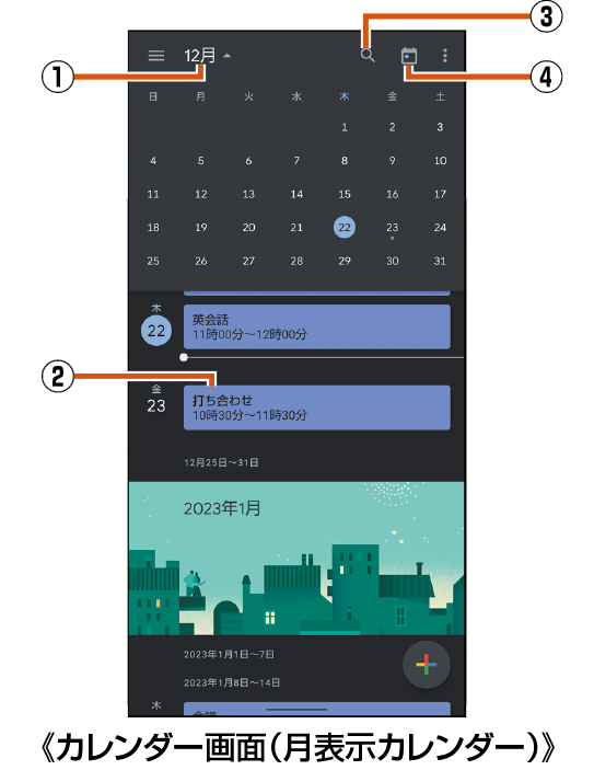 カレンダーの利用にはGoogleアカウントの設定が必要です。詳しくは、「初期設定を行う」をご参照ください。