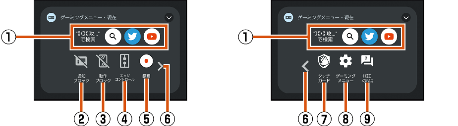 ホーム画面→「アプリ一覧画面」を表示→[設定]→[AQUOSトリック]→[ゲーミングメニュー]→[動作ブロック]