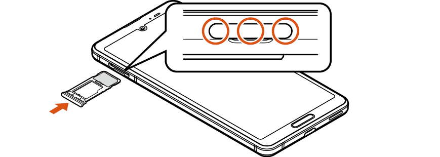 au ICカード/microSDメモリカードトレイを本体に対してまっすぐ水平に、奥までしっかり差し込む