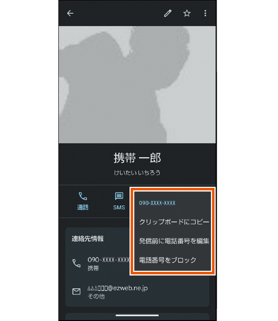 各項目やデータをロングタッチすると利用できるメニューが表示されます。