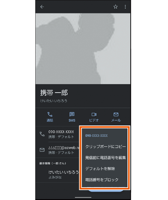 各項目やデータをロングタッチすると利用できるメニューが表示されます。