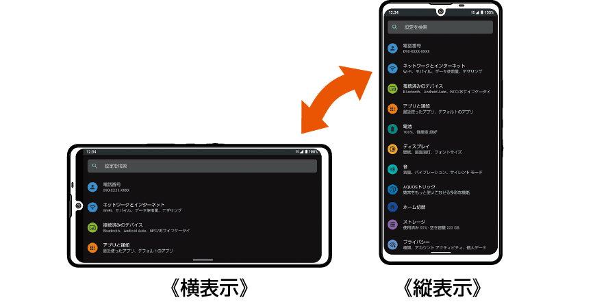 縦横表示を切り替えるかどうかは、ホーム画面→「アプリ一覧画面」を表示→[設定]→[ディスプレイ]→[詳細設定]→[画面の自動回転]で設定できます。 「画面の自動回転」が無効に設定されていてもアプリケーションによっては、端末が回転すると |