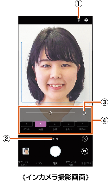 インカメラ撮影画面の見かた