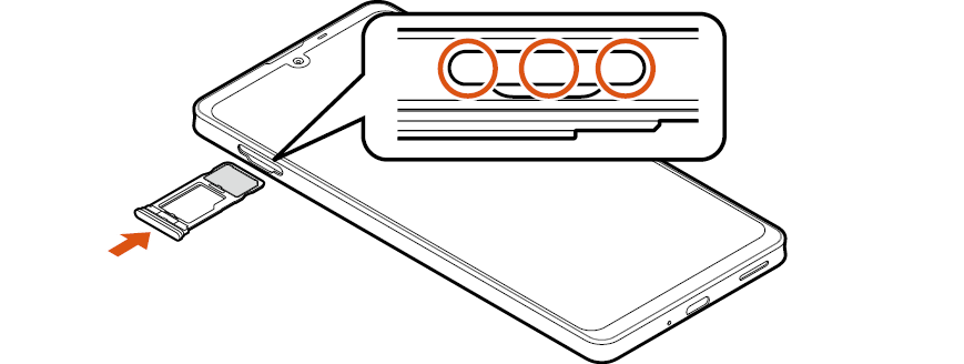 カードトレイの閉じかたについて詳しくは、「SIMカード/microSDメモリカードトレイの閉じかた」をご参照ください。