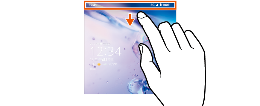 ホーム画面では、ステータスバー以外の位置から下にスライドしてもお知らせパネルを表示できます。