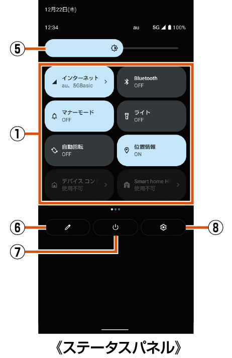 ステータスパネルでは、左右にフリックすると、ページを切り替えることができます。