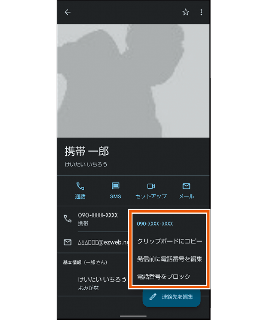 各項目やデータをロングタッチすると利用できるメニューが表示されます。