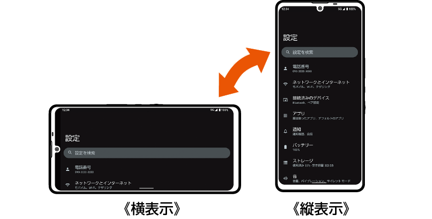 本製品の向きに合わせて、縦横表示を切り替えます。