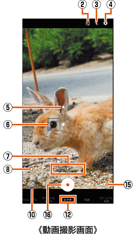 画面下部を左右にスライドして撮影モードを「ビデオ」/「マニュアルビデオ」に切り替える